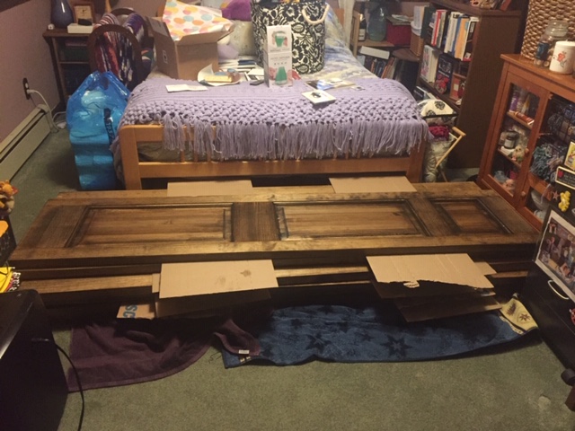 The female bird is in the nest all the time now. We’re not sure if she laid her eggs yet (because we grabbed a step stool and tried to look into the nest one time that she flew away), but she’s there all day and she’s still there before we go to bed at night. My husband has taken to calling her “stupid bird” and repeats the name in a singsong voice until she picks her head up and looks at him through the door window. We check on her repeatedly during the day. I’m sure she is already regretting her decision to build here this year.